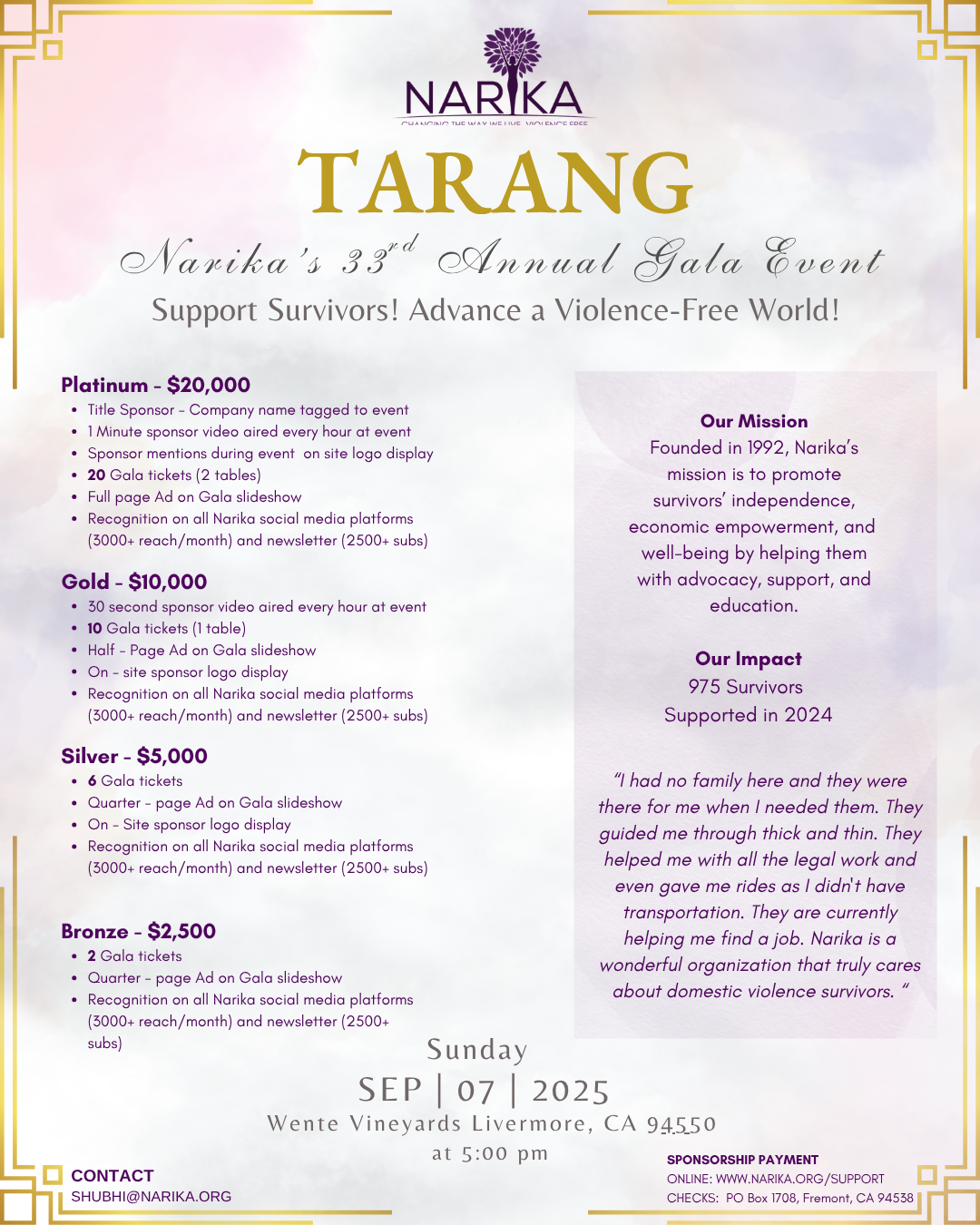 Join us for Narika's Annual Gala, Tarang - An Evening of Light and Hope.